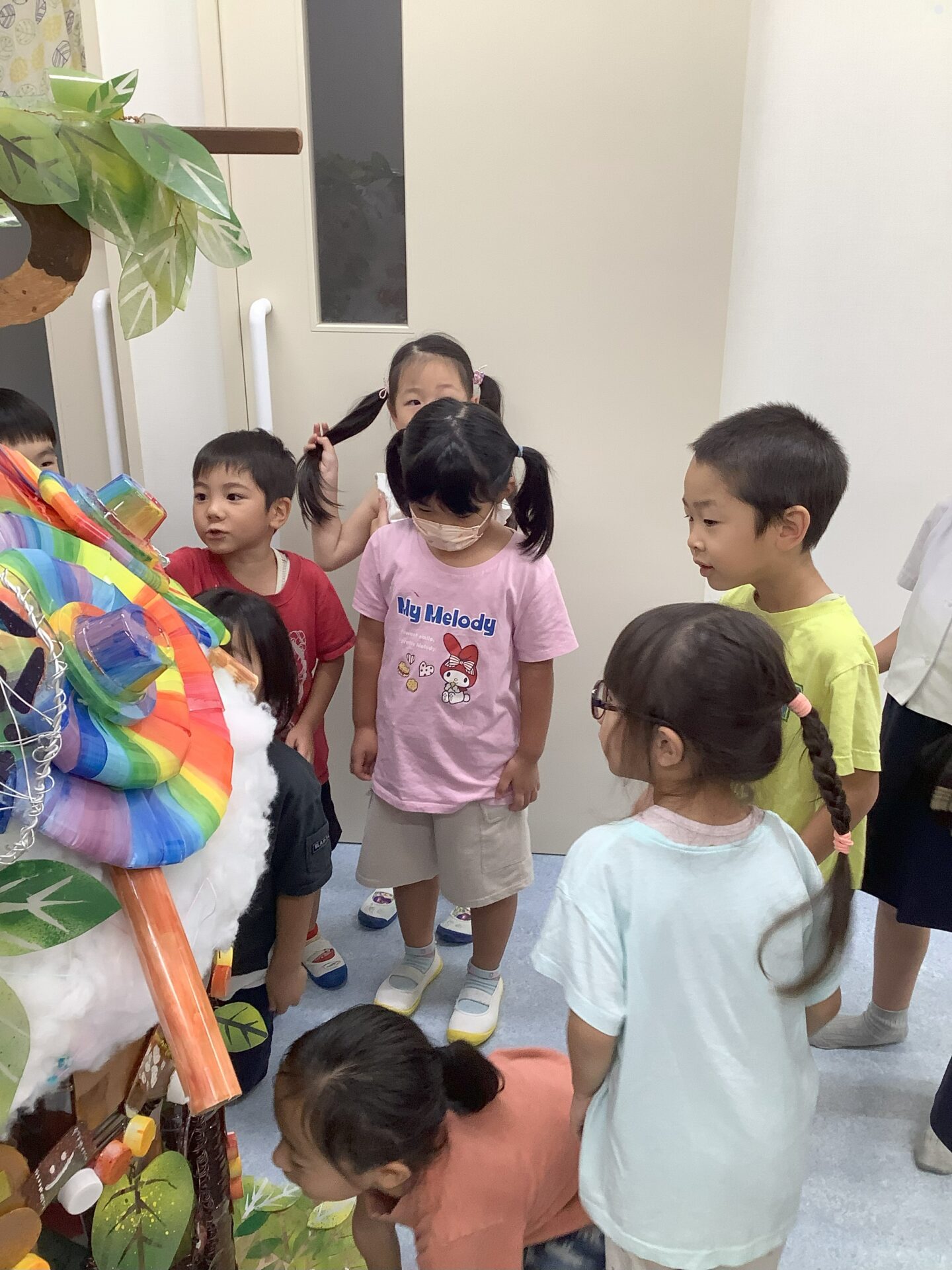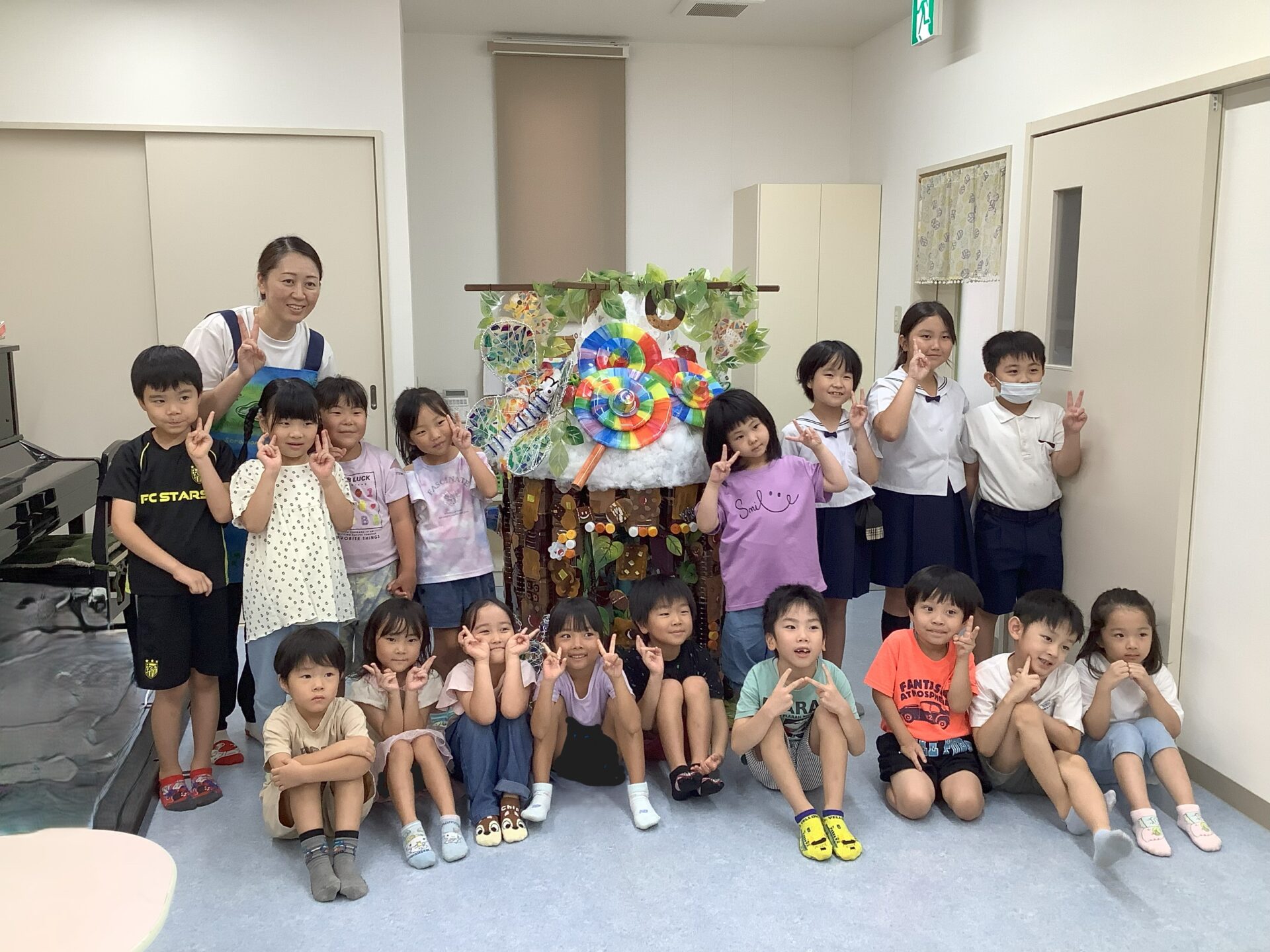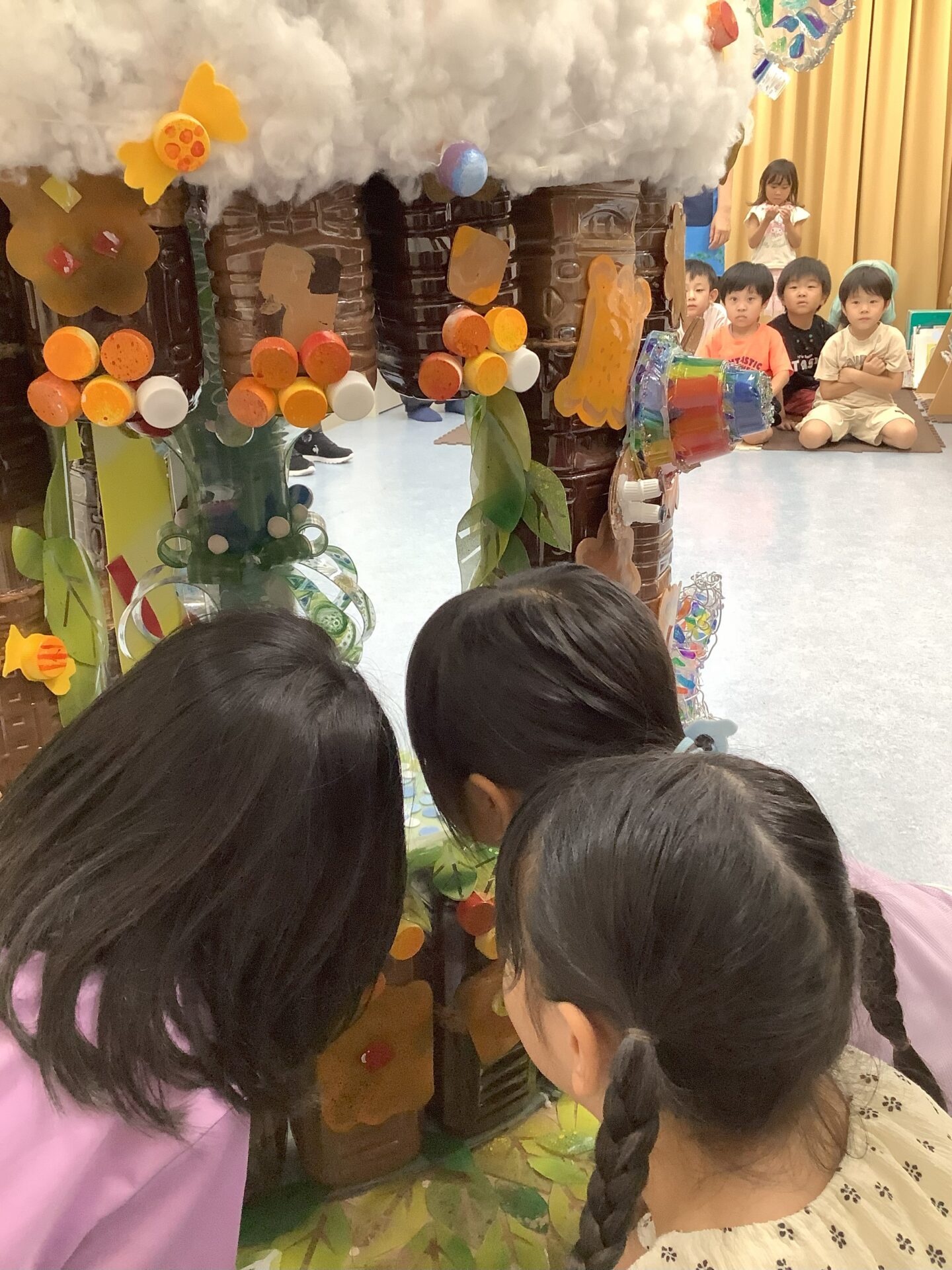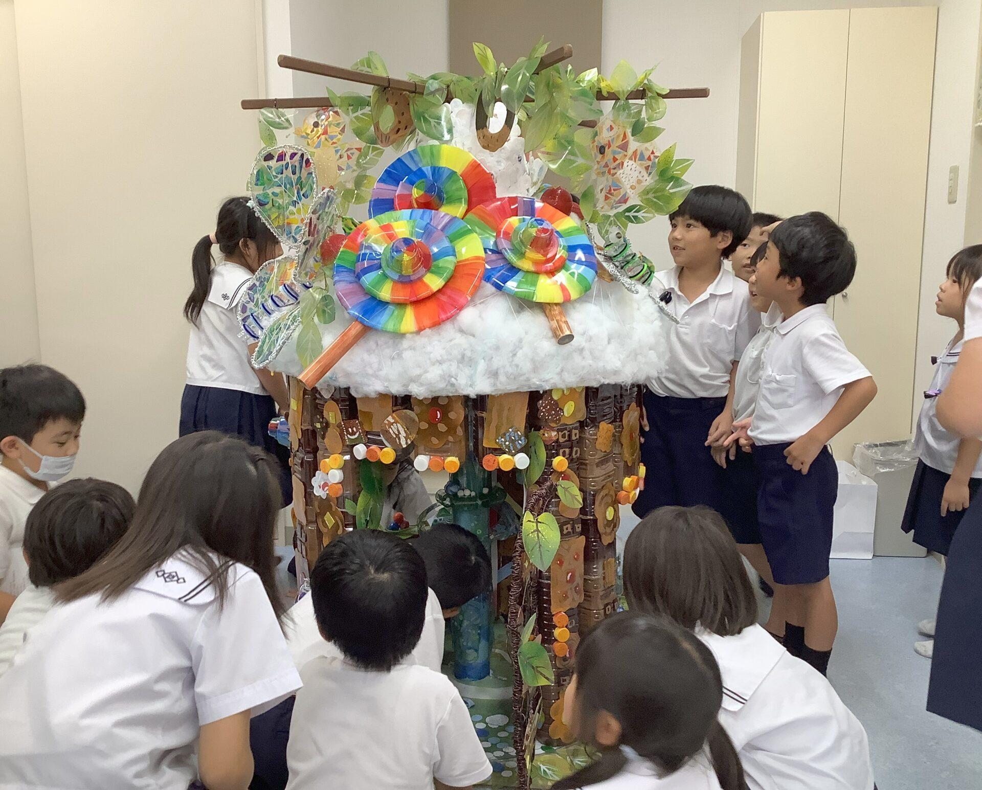 廃材の協力をしてくださった、保護者様、こども園の先生方のおかげで作品が完成しました。