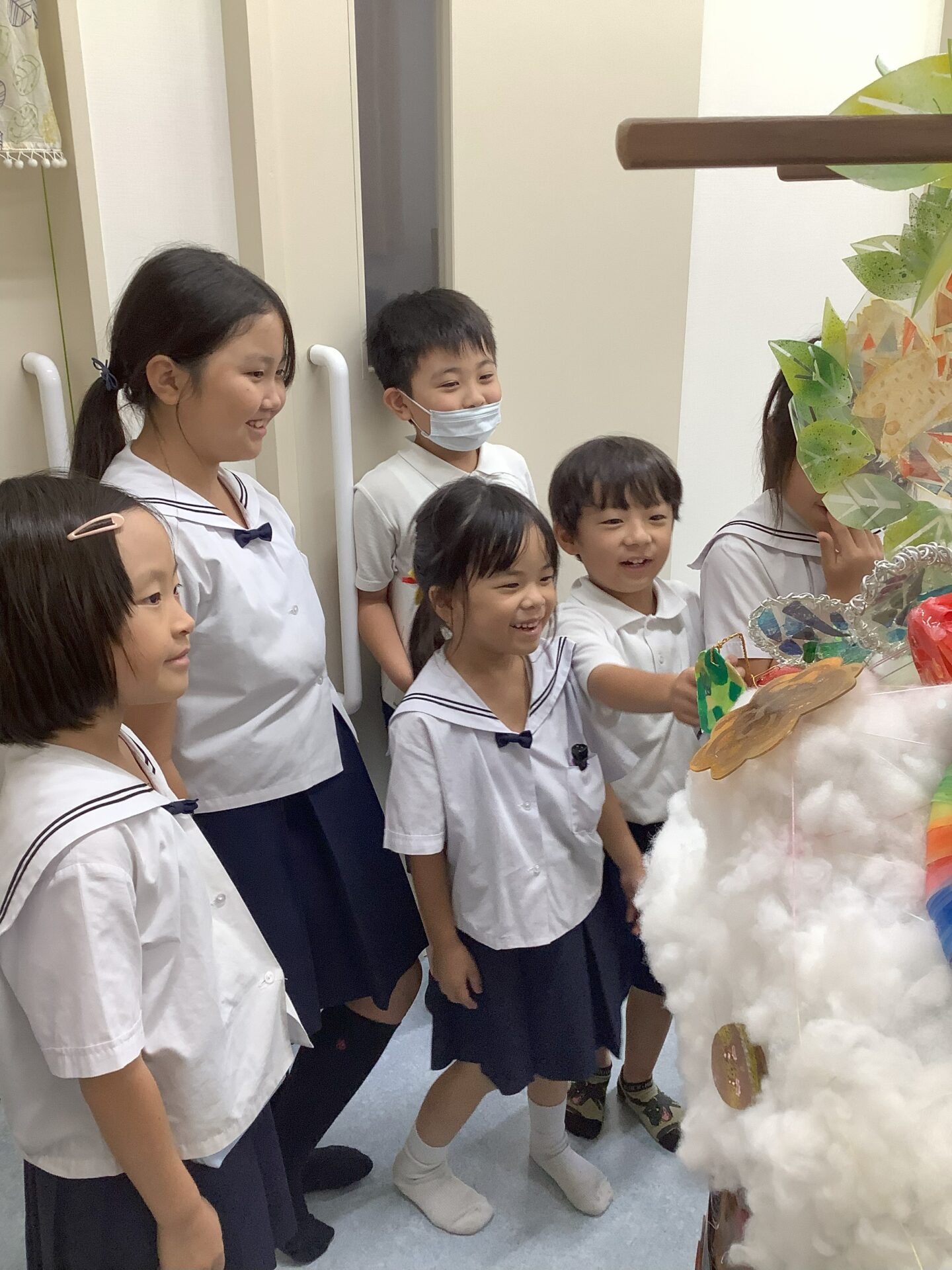 児童クラブから、えひめ愛顔子ども芸術祭に出す作品が完成し、9月17日(水曜日)に支援室にて、お披露目会を行いました。