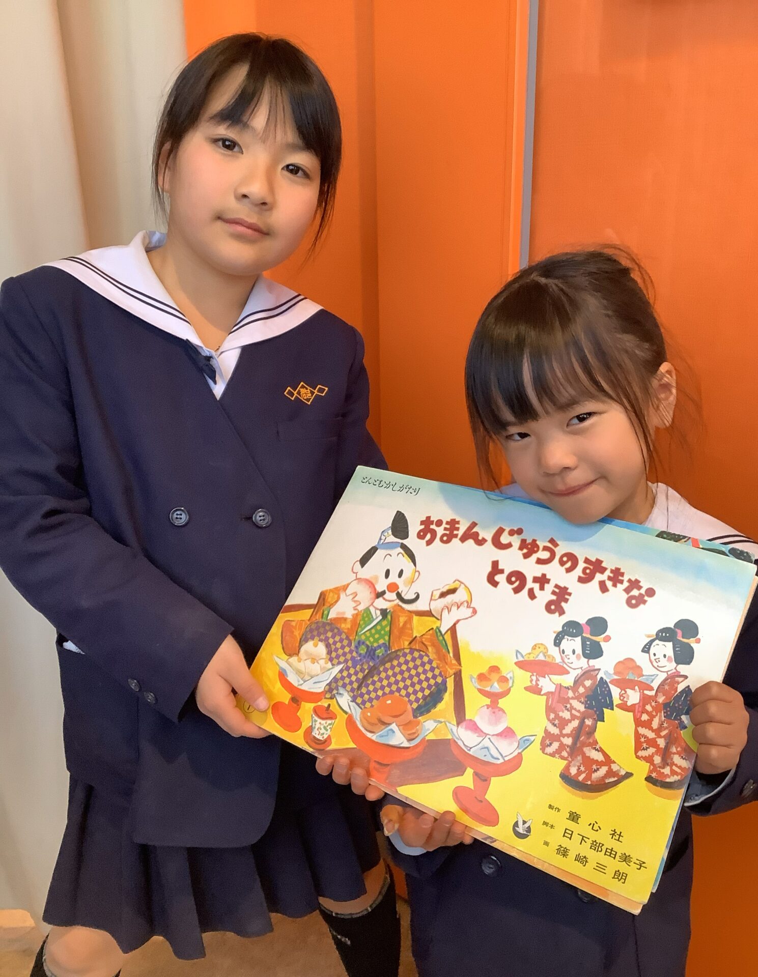 今月は、紙芝居「おまんじゅうのすきなとのさま」を2人のお友だちが読んでくれました。
